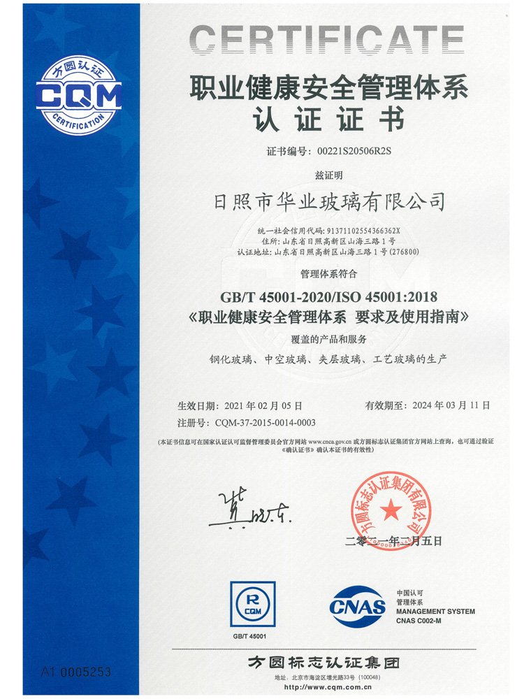 職業健康安全管理體系認證證書